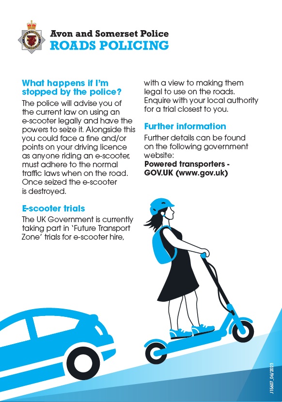 We have been asked by Avon & Somerset Police to share an important letter regarding the legal use of privately-owned e-scooters. The full letter is attached below for parents and carers to read.